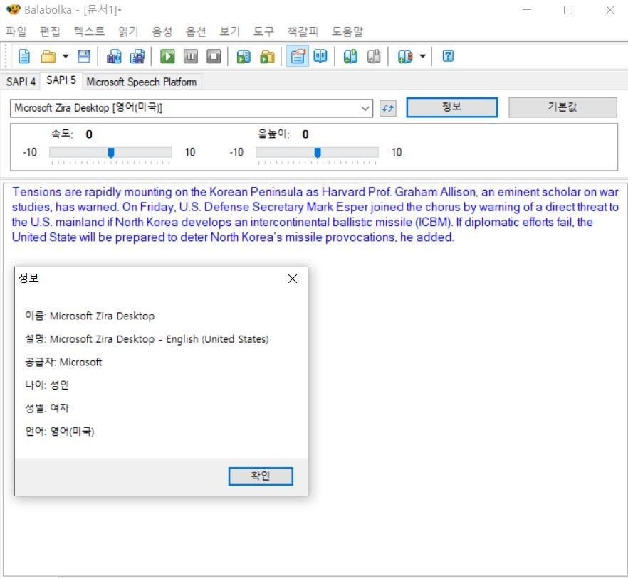 윈도우에 많은 음성 TTS 엔진이 있다면 많은 억양과 강세로 다양한 발음을 들어볼 수 있겠죠?^^