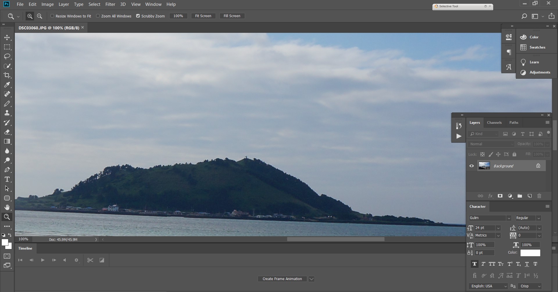 우선 포토샵에서 보정을 하고자 하는 사진을 불러옵니다.