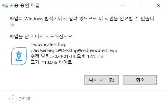 이때 '사용중' 등등의 메세지가 뜨면서 파일명이 바뀌지 않을 수도 있습니다. 그때는 또 다른 방법을 씁니다.