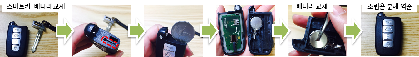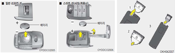 ② 스마트키 규격에 맞는 새 배터리를 구입하셔서 교환하시면 됩니다.