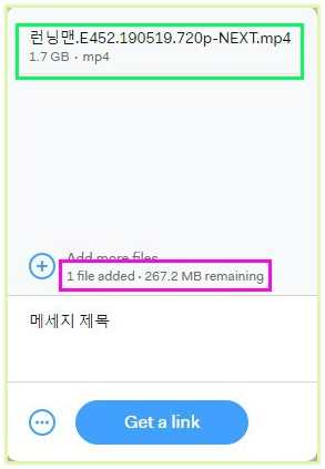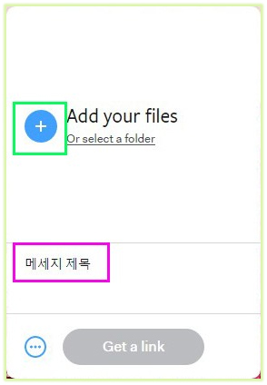 3. 적당한 메세지 제목을 입력하고 "+" 부분을 클릭하여 공유할 파일들을 지정 (2G 까지 가능)