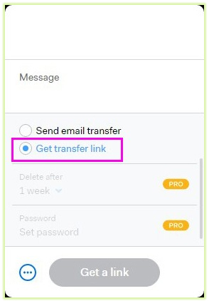 2. 두번째 항목인 "Get transfer link"를 선택하고 [Message] 부분을 클릭